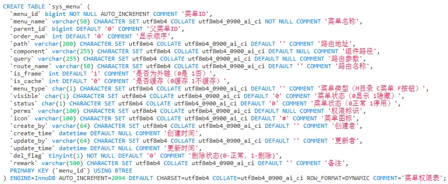本表作用存储角色的菜单项路由,动态展示给前端
