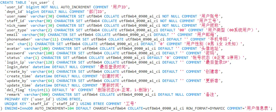 2.1 用户表